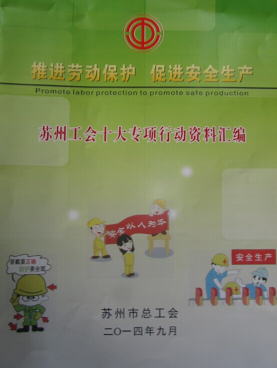 為進(jìn)一步推進(jìn)工會(huì)勞動(dòng)保護(hù)、促進(jìn)企業(yè)安全生產(chǎn),維護(hù)職工安全健康權(quán)益,按照市委、市政府和省總工會(huì)安全生產(chǎn)工作的指示精神和部署要求,近日,市總工會(huì)印發(fā)了《蘇州工會(huì)推進(jìn)勞動(dòng)保護(hù)、促進(jìn)安全生產(chǎn)十大專項(xiàng)行動(dòng)實(shí)施方案》,并編印了配套資料匯編,從現(xiàn)在開始至2015年12月底,在全市工會(huì)開展十大專項(xiàng)行動(dòng)。